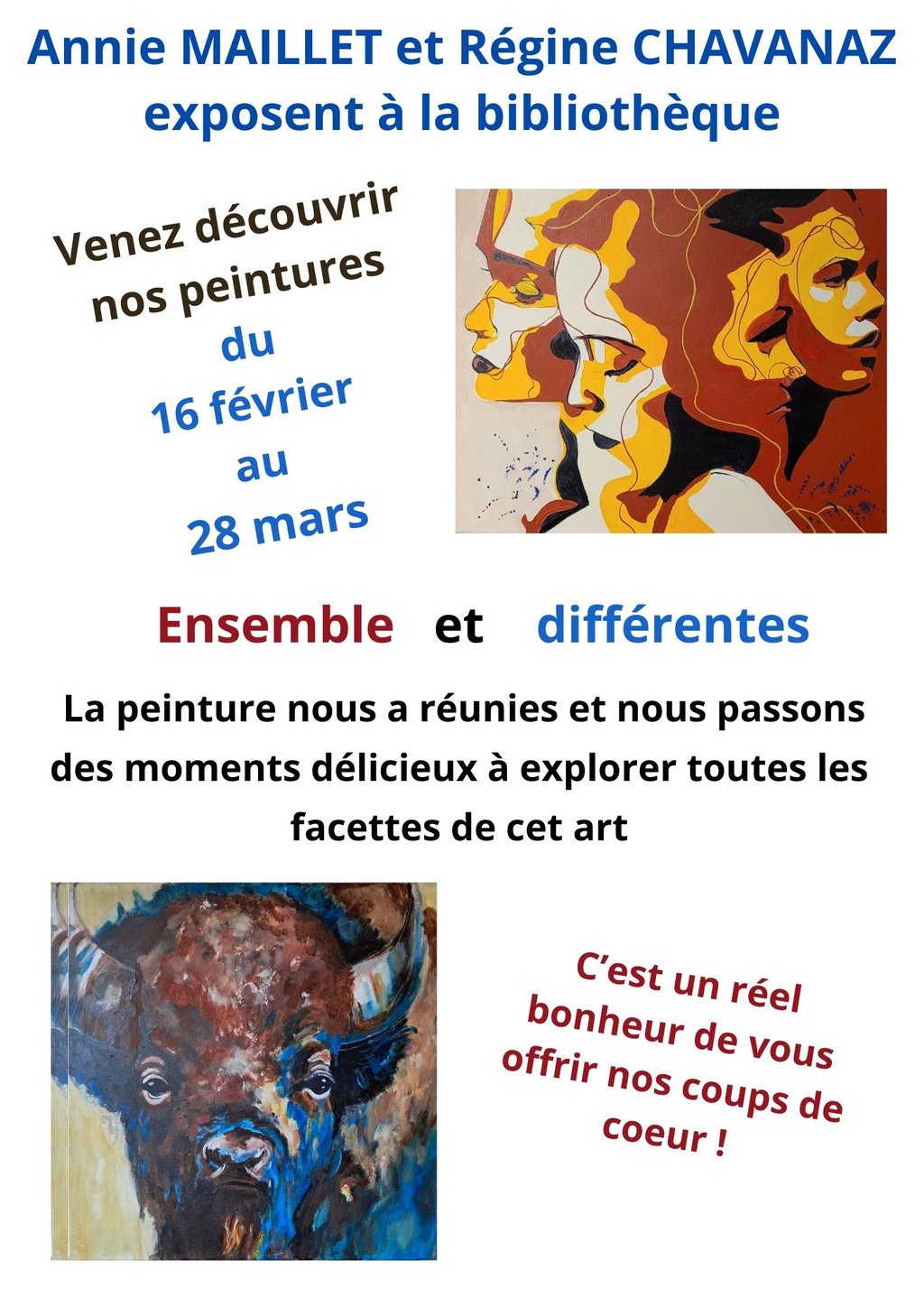 Annie MAILLET et Régine CHAVANAZ exposent à la bibliothèque de DOUSSARD