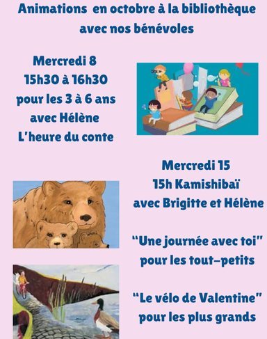 • Thème : 2 kamishibaïs : “Une journée avec toi” pour les tout-petits / “Le vélo de Valentine” pour les plus grands
